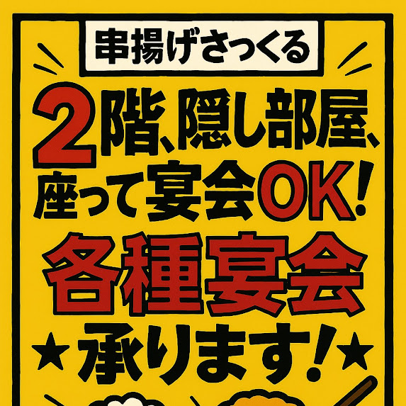 福山駅南口から徒歩1分という好立地に加え、座席フロアも完備している串揚げさっくるは、福山エリアでの宴会や飲み会に最適です。