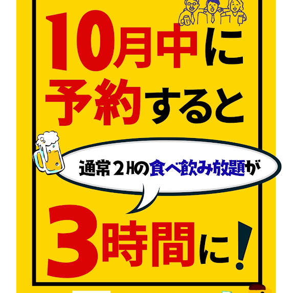 10月中のご予約で食べ飲み放題が3時間に延長